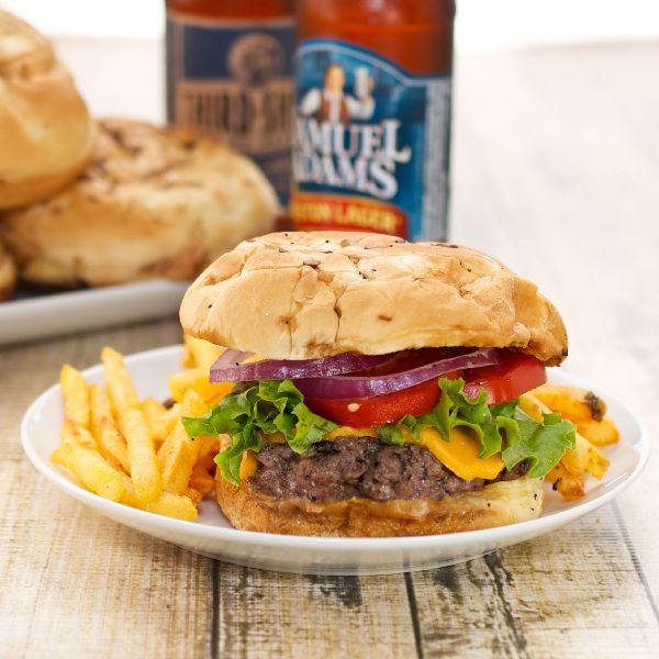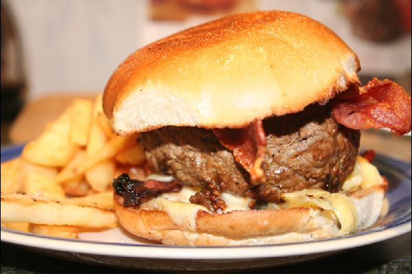 Big Burger made with 1/2 Lbs of  pure Beef meet, tomato sauche, onions